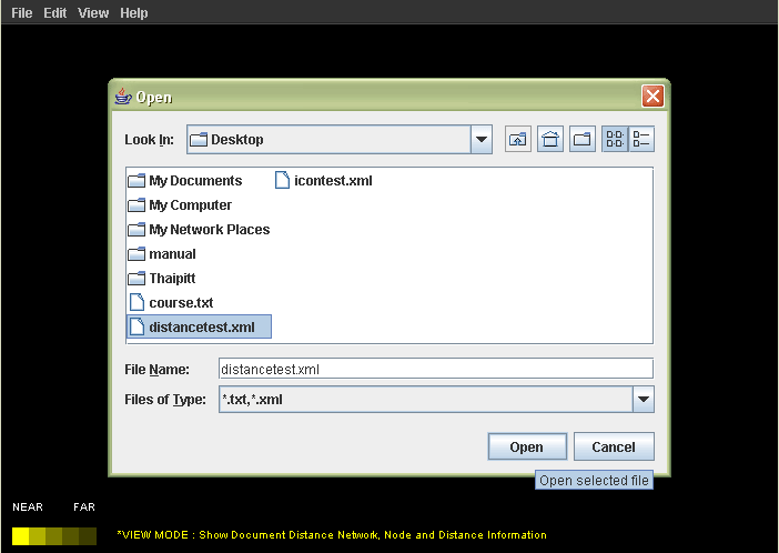 Another way is to run the tool as standalone and then open the similarity distance data file, which only text or xml file format is accepted. Also, the tool allows users to drag a data file (but it must be .txt or .xml only) and drop it to the applet.